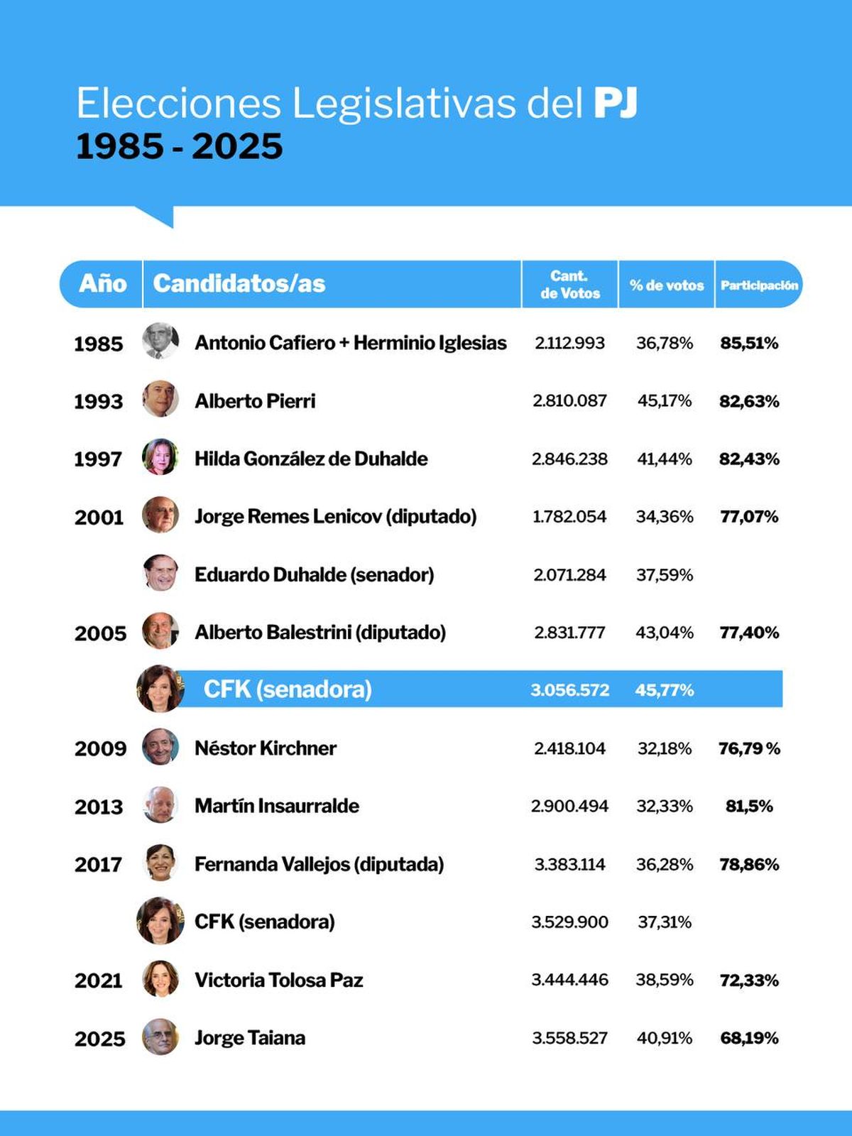 «El peronismo retuvo las 46 bancas de diputados en juego, y perdimos escaños en senadores producto de las internas. Muchas inútiles», agregó y dejó un mensaje para los siguientes dos años del Gobierno de Milei: «No hay más herencia recibida. Ahora la sociedad le va a exigir resultados. Y los problemas siguen igual. O peor«.